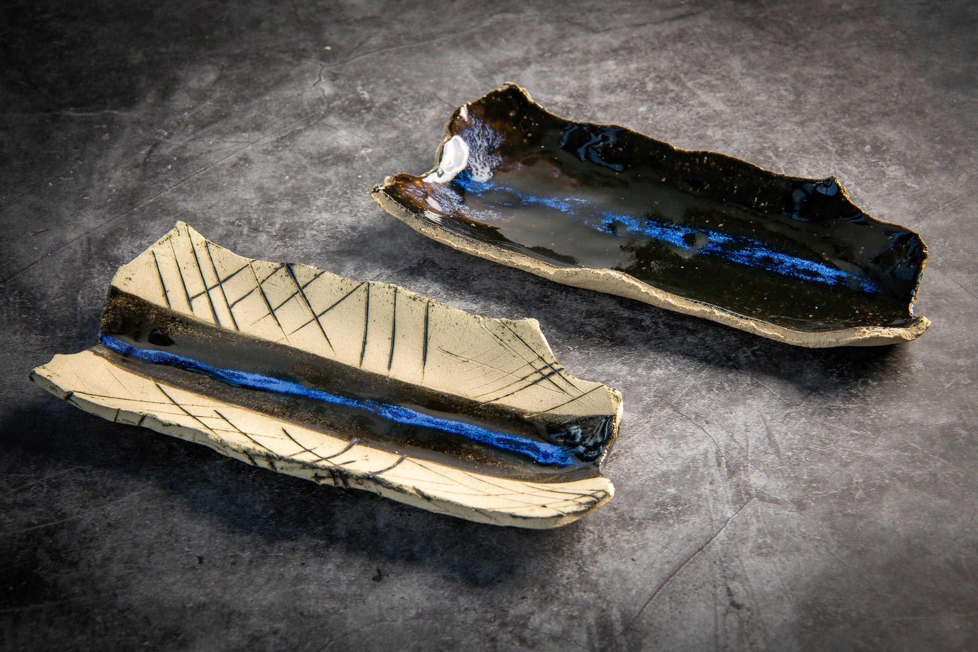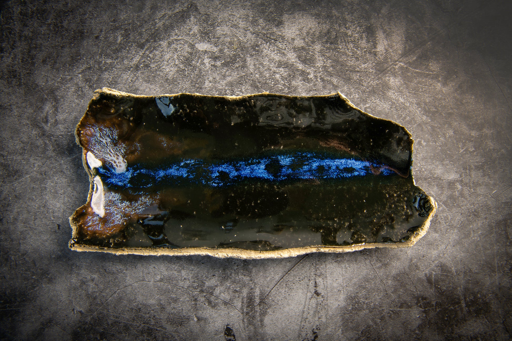 The Scratches Deep Blue Tray is visual abyss contained in ceramic. Unlike its Maki sister, this piece covers nearly its entire surface with a deep blue that varies between warm and cool tones, creating depth. Beneath this blue mantle, the scratch lines remain present but resignified: they are no longer protagonists, but whispers hidden, gestures that exist in the shadows.
