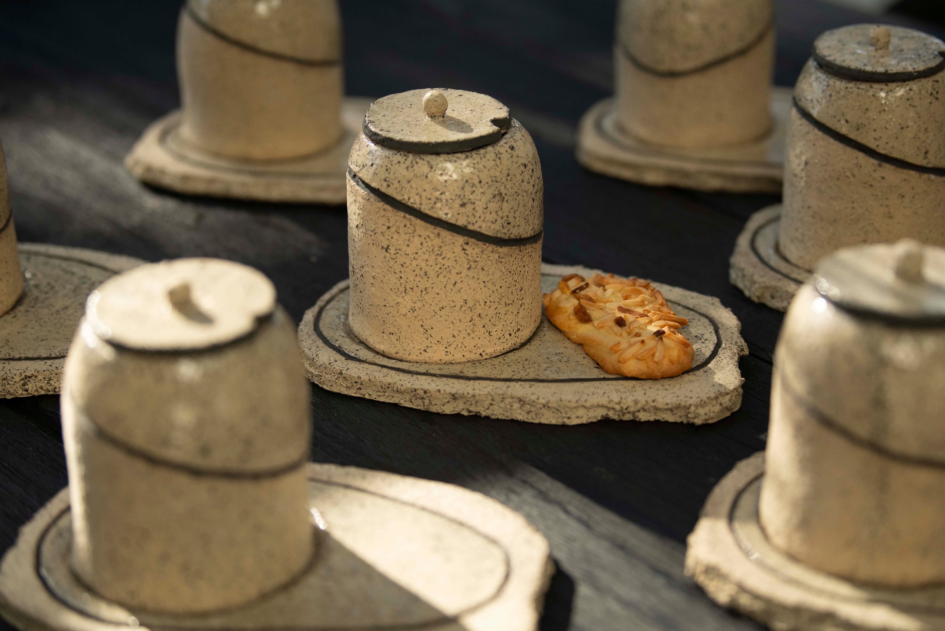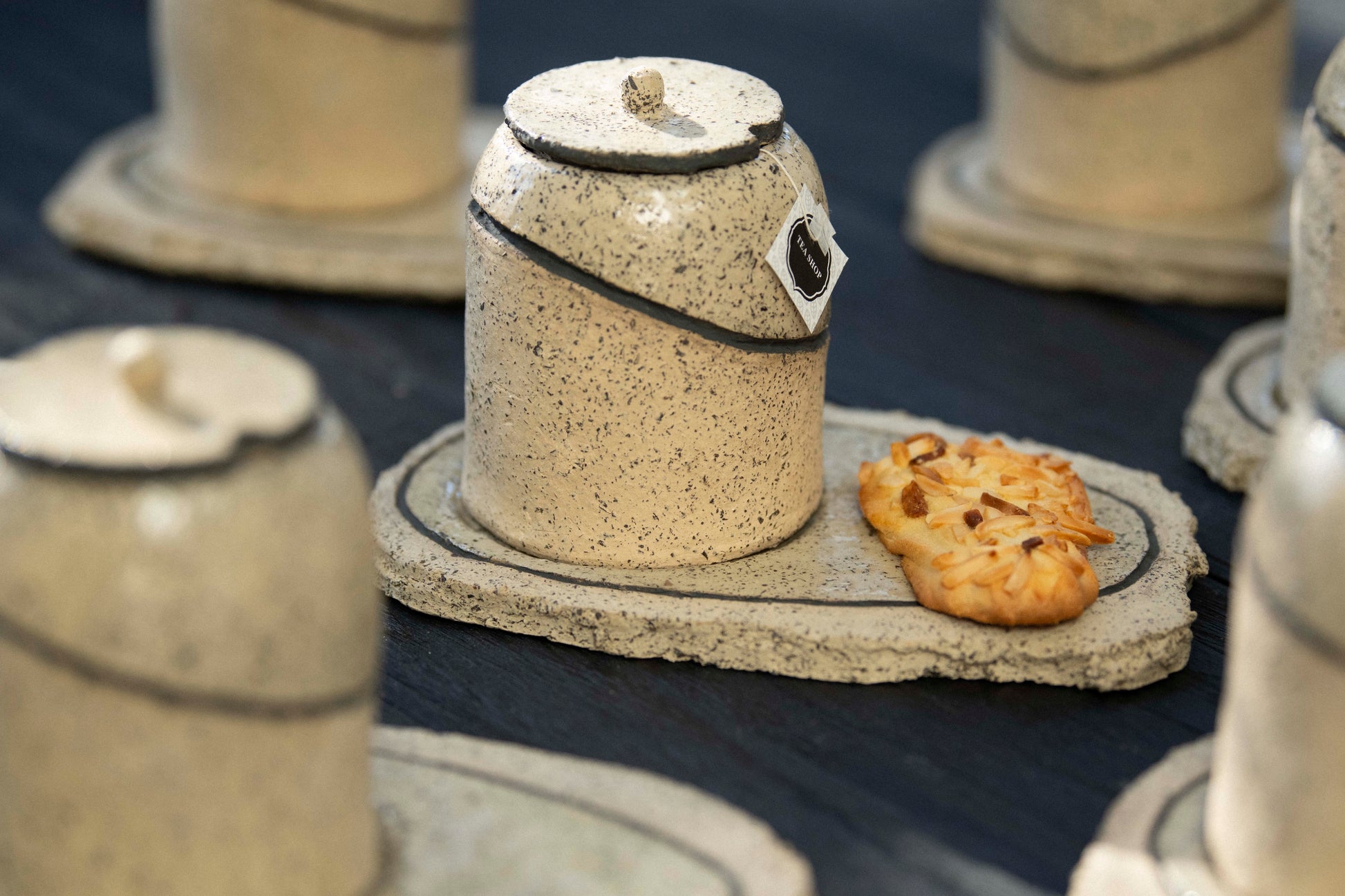 Please note, due to their handmade nature, our products may vary slightly in size. Measurements: Cup 8.5 cm diameter x 10.5 cm height. Plate 20 cm length x 14 cm width.